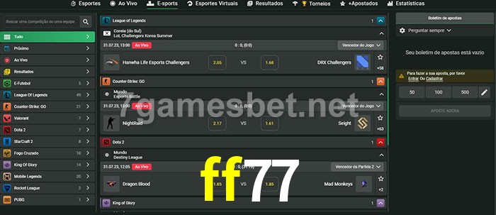 A aposta ff77 oferece aos jogadores a experiência mais conveniente de apostas em eSports!